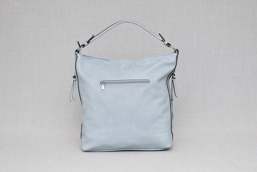Чантата се затваря с цип, има два странични джоба с цип и джоб с цип на гърба.