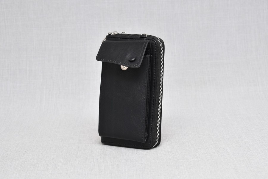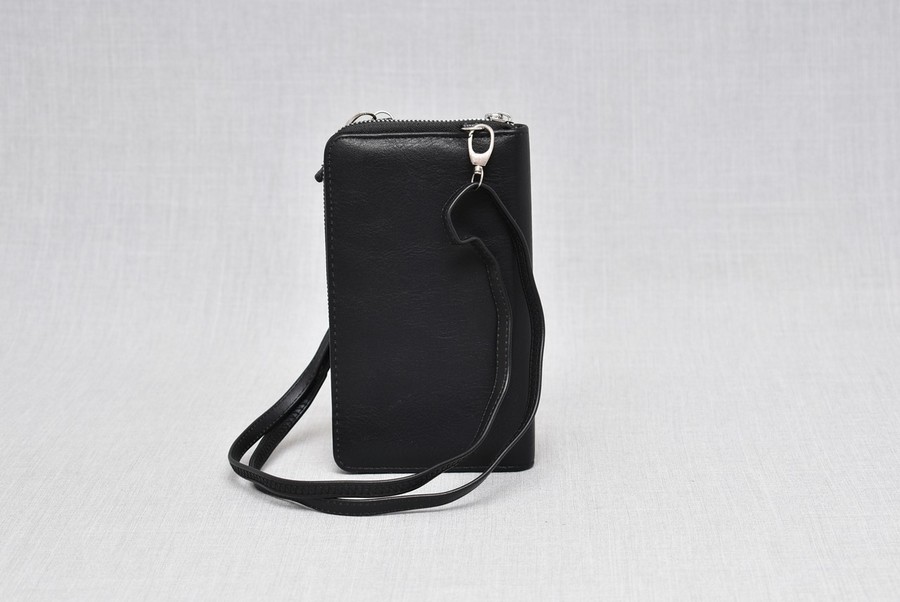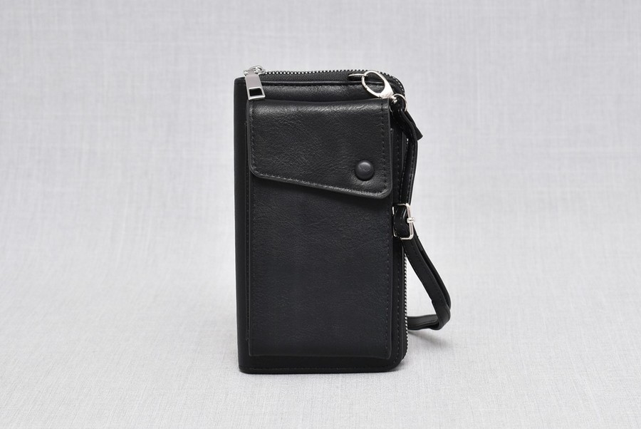 Чантата има лицев джоб за телефон с капак с магнит и отделна дълга дръжка за рамо.