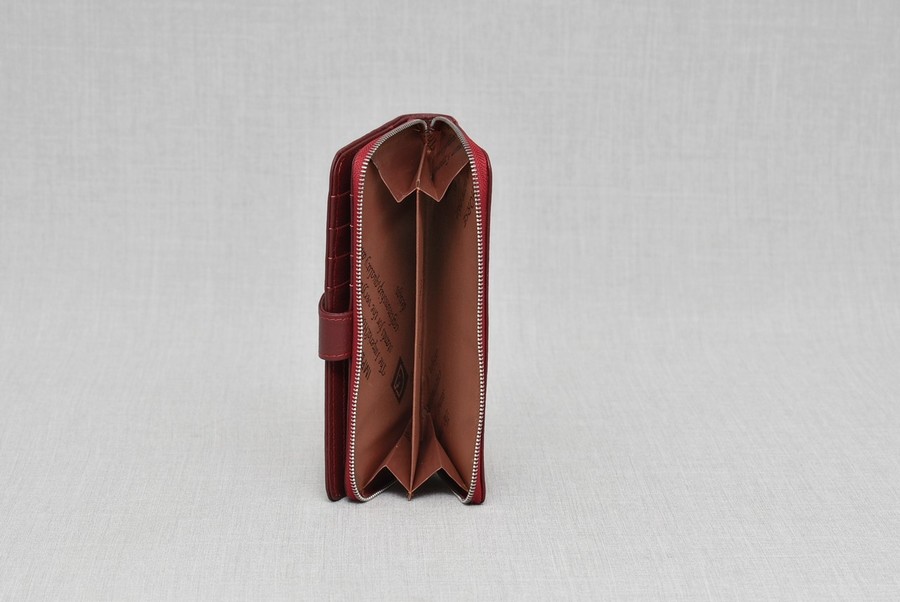 Портмонето се затваря с копче капса и има луксозна кутия за подарък.