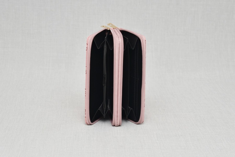 С две отделения за банкноти, поотделно затварящи се с цип.
